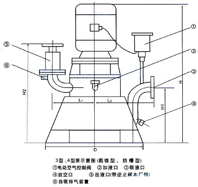 4、進口管路可安裝空氣自控電磁閥,關機后自動消除泵內液體衡吸,實現“一次灌液,終身自吸”。
